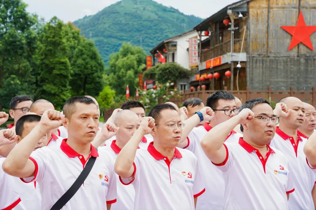 在红军头像纪念碑前,面对鲜红的党旗,大家高举右手,紧握拳头,郑重且庄严地重温入党誓词。那一声声铿锵有力的誓言,是对先烈的最好纪念,也是对未来的郑重承诺。在浓厚的党旗氛围中,每位党员同志都深切感受到了红色情怀的力量。